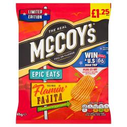 McCoys Limited Edition Epic Eats Tex-Mex Flamin Fajita Flavour Ridge Cut Potato Crisps 65g