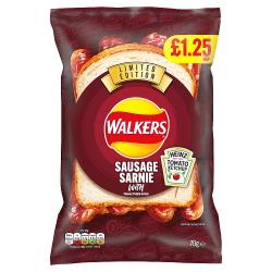 Walkers Sausage Sarnie with Heinz Tomato Ketchup Sharing Bag Crisps PMP 70g RRP £1.25